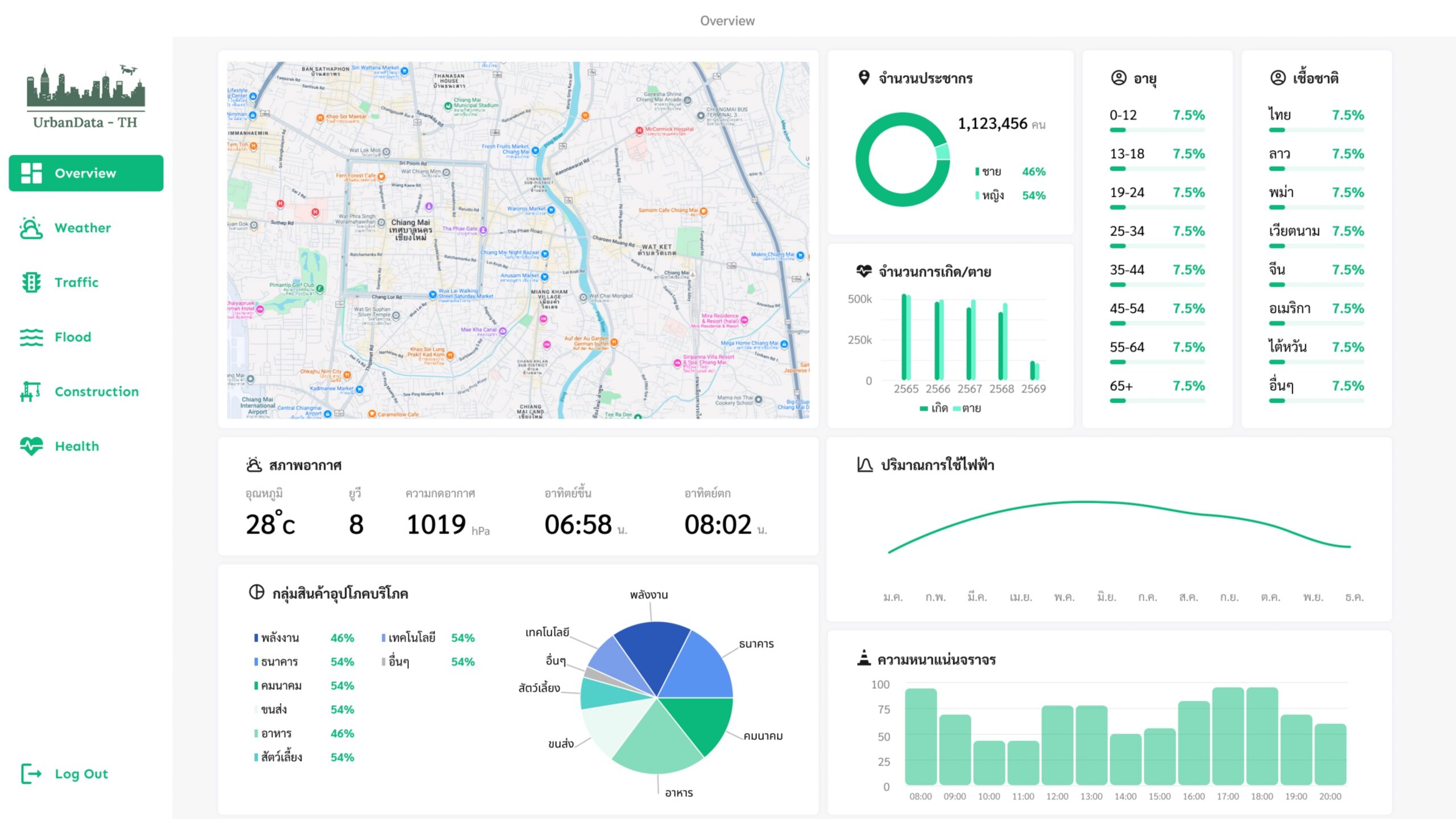 เรามีระบบวิเคราะห์ข้อมูลแผนที่ด้วย AI และ Machine Learning ซึ่งสามารถตรวจจับพื้นที่ต่าง ๆ เช่น อาคาร ต้นไม้ ถนน เขตที่อยู่อาศัย และพื้นที่เกษตรกรรม